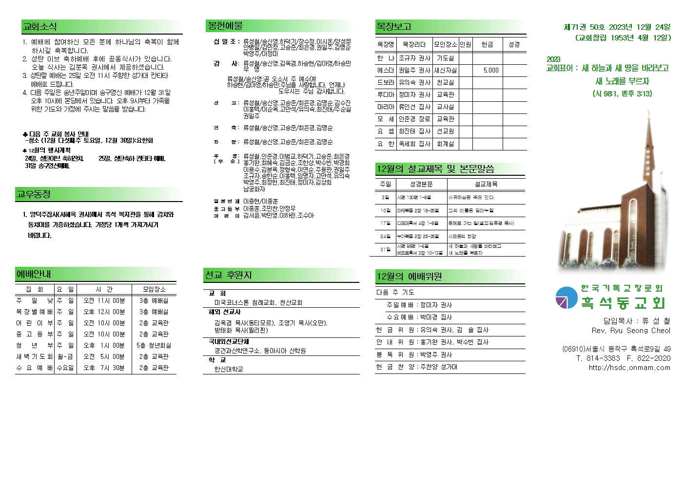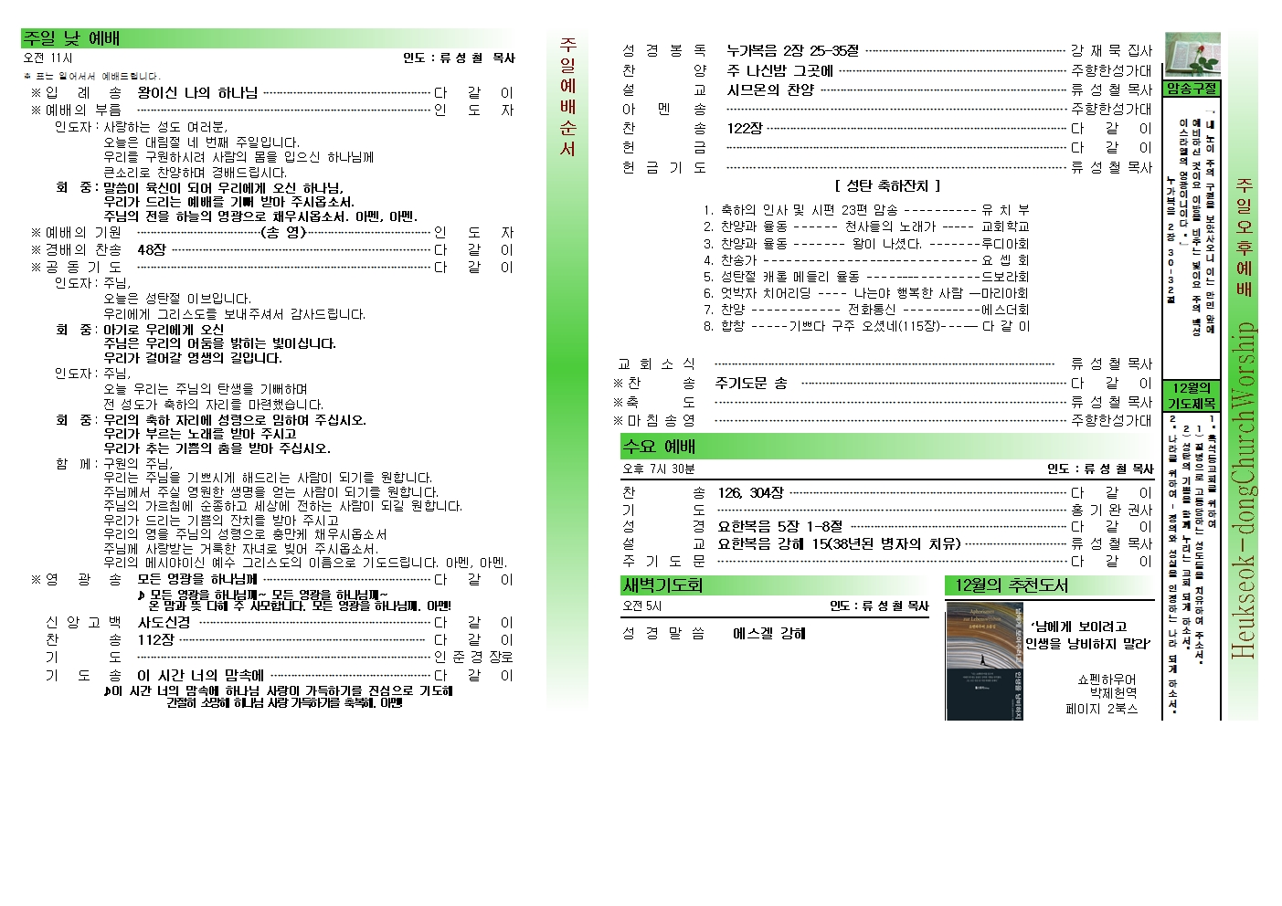 2023년 12월 25일 성탄 축하 예배 주보